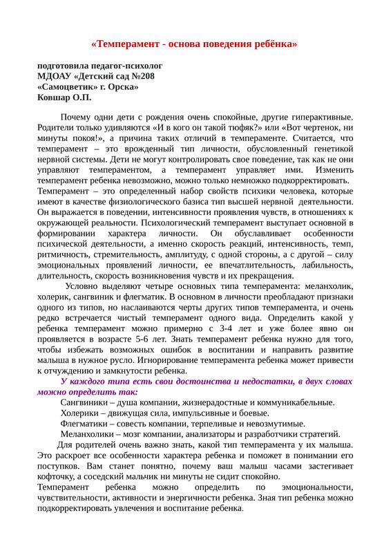 "Темперамент Основа Поведения"